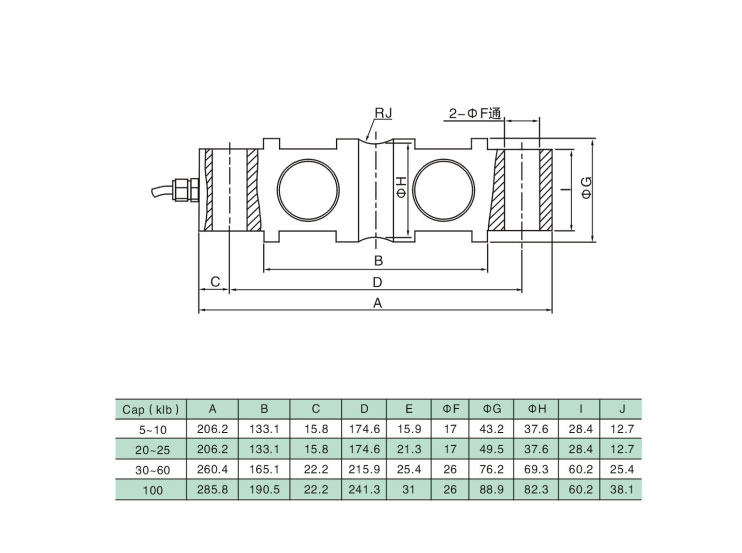 | 額定載荷Rated Load | 5klb~100klb |