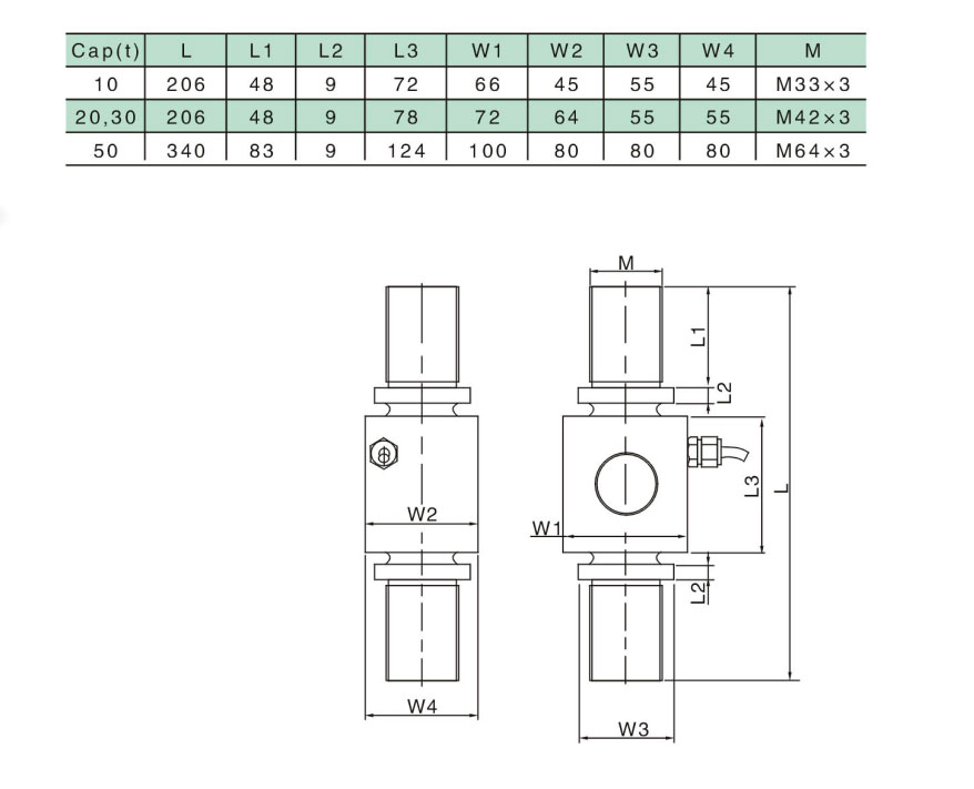 此系列稱重傳感器是用于吊鉤秤的專用傳感器,彈性體采用合金鋼材料制作,具有精度高,安裝方便,抗偏載能力強,抗沖擊性能好等優(yōu)點,經(jīng)過良好的防潮密封,適用各種吊秤適用。